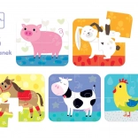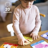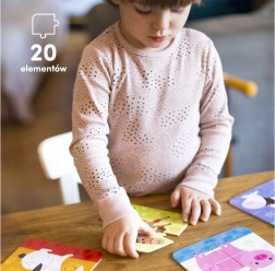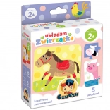 CzuCzu Puslespil Jeg lægger dyr er et sæt med fem enkle puslespil, ideelle allerede fra 2 år. Hvert puslespil består af 4 brikker, hvilket understøtter koordination og kreativ tænkning.