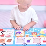 Innovativt læringspuslespil til børn fra to år. Når den næsten meterlange puslespilsbane er samlet, skal brikkerne tilpasses de passende huller. Hjælper børn med at skelne mellem former og farver, og udvikler kreativitet og logisk tænkning.