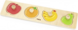 Det holdbare malede træ og de glatte kanter sikrer sikker leg. Puslespillet hjælper børn med at lære farver, former og frugtnavne på en sjov måde. Et godt valg til både hjemmet og børnehaver.