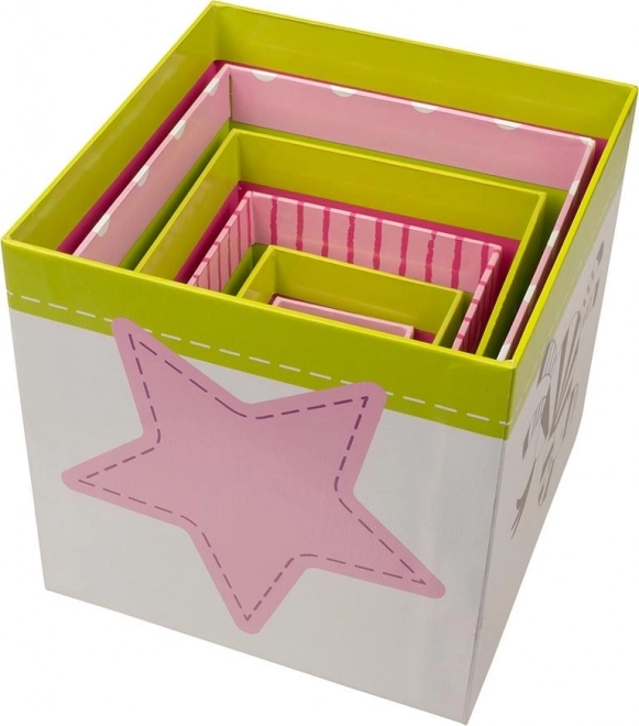 Sættet indeholder 6 solide papklodser, der kan stables til et højt tårn eller lægges ind i hinanden. Hver klods er dekoreret med venlige illustrationer af dyr, planter og tal, så børn på en legende måde udvikler grundlæggende færdigheder og tålmodighed.