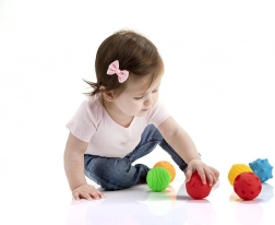 Hver bold har en anden overflade og et andet udtryk, som vækker nysgerrighed og understøtter sanseopfattelse og finmotorik.