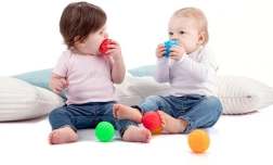 En diameter på ca. 6 cm gør det let at gribe, klemme og kaste, så boldene er perfekte til de første motoriske lege.
