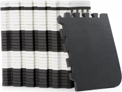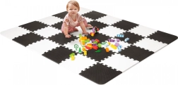 Det stilfulde sort-hvide skumgulvtæppe KINDERKRAFT Luno giver børn fra 10 måneder en blød og sikker legeflade. Delene samles nemt som puslespil; underlaget er afvaskeligt, dæmper støj og isolerer mod kulde. Den riflede overflade er skridsikker og uden aftagelige dele. Tykkelse 1,2 cm, 30 brikker i størrelsen 29,5 × 29,5 cm.