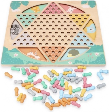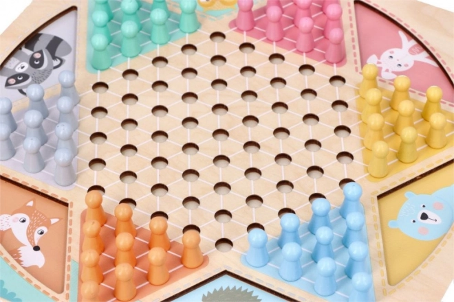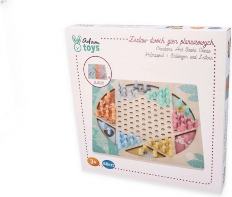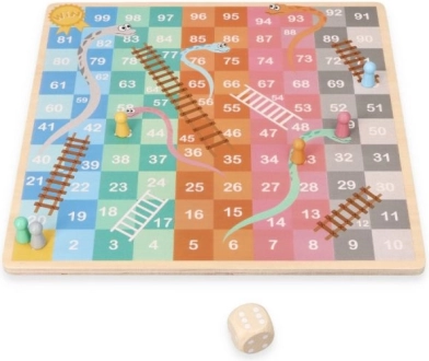 Dette brætspil i træ byder på to klassikere i ét. På den ene side finder du det strategiske HALAMA (kinesiske damer/kinesisk dam), hvor målet er at flytte alle dine brikker til den modsatte side. På den anden side venter det tempofyldte Slanger og Stiger, hvor du med terningen rykker mod målet, klatrer op ad stiger og glider ned ad slanger.