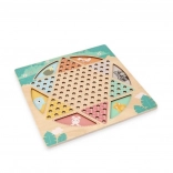 Fine dyremotiver og farverige pinde/figurer støtter koncentrationen og gør spillet attraktivt for børn.