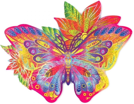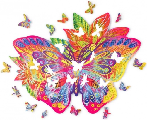 Dette elegante træpuslespil i form af en sommerfugl vil glæde enhver, der elsker æstetik, udfordringer og kvalitetsarbejde. Realistiske kurver og farverige mønstre skaber efter samling et imponerende billede, der egner sig perfekt til udstilling.