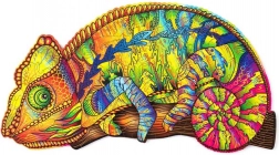 Farverigt træpuslespil i form af en kamæleon for teenagere og voksne glæder med detaljerede brikker og et dekorativt udseende. Originalt design, kreativ afslapning og samleobjekt i ét.