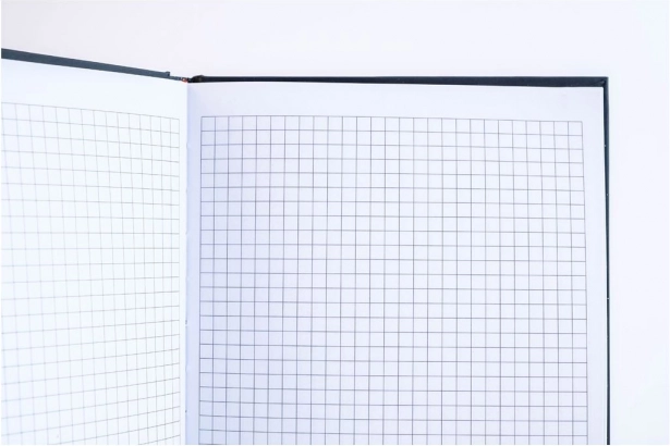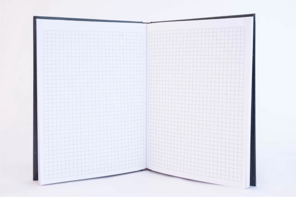 A5-notesbog med hårde omslag. Den sorte notesbog har et rumtema på forsiden. Midt på omslaget er der en blød, kvadratisk plade formet som en astronaut. Notesbogen har 80 ternede sider.