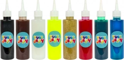 • 8 geléfarver (150 ml) – blå, hvid, rød, neon, brun, turkis, sort og glitter