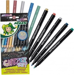 Oplev et kreativt sæt til både små og store skabere: metalliske farveblyanter og tuscher i en pakke med 10 stk. Ideelt til tegning på mørkt og lyst papir, dybe farver, let at bruge og sikkert for børn fra 3 år.