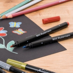 Med dette alsidige sæt kombinerer du præcise linjer og brede strøg. De metalliske nuancer skiller sig især ud på sort eller farvet papir, hvor de skaber strålende effekter og giver hvert værk en unik glans. Perfekt til kort, skoleprojekter og kreativt arbejde derhjemme.