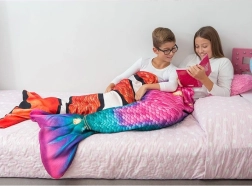 Et enestående design med farvede skæl giver en følelse af magiske eventyr under havet. Tæppet er fremstillet af blødt materiale, der sikrer varme og komfort selv på lange, kolde aftener. Den perfekte ledsager til daglig afslapning og puttetid.