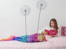 Giv dine børn masser af sjov med vores stilfulde og hyggelige havfruehale Rainbow, som er ideel til mange forskellige anledninger. Dette tæppe kombinerer livlige farver i et regnbuedesign, der glæder både børn og voksne.
