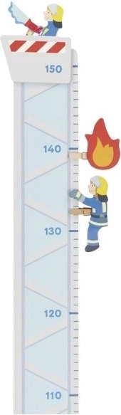 En træ-vækstmåler med brandmandsmotiv er ideel til at følge dit barns vækst. Den kan nemt hænges på væggen og leveres med to klips i form af en klatrende brandmand og en flamme, som bruges til at markere højden. Måleren er ikke kun praktisk, men også en fantastisk dekoration til børneværelset.