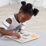 Trækalender og ur PolarB Montessori er den perfekte kombination af leg og læring. Den hjælper børn med at lære at genkende klokkeslæt og ugens dage samt årstider og vejr ved hjælp af interaktive elementer.