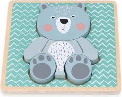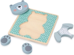 Træpuslespillet med bjørnen er perfekt til at træne finmotorik og fremme kognitiv udvikling gennem leg. Børnene lærer at genkende former og kropsdele.