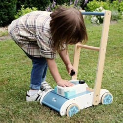 Træklipperen med lyd er det ideelle valg for alle små gartnere. Dette legetøj er designet til at hjælpe børn med at forbedre deres koordination og balance. Desuden, selvom det understøtter gang, er det ikke beregnet som en traditionel gåstøtte til at lære de første skridt.