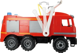 Den enorme brandbil LENA Giga Trucks Actros bringer realistisk action til små helte. Den stabile konstruktion med galvaniserede stålakseler, den drejelige tagmonterede sprøjte og den kraftige stempelpumpe sikrer sjov leg både hjemme og i haven.