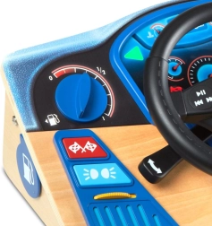 Robust udførelse i træ kombineret med kvalitetsplast sikrer lang levetid og en behagelig legeoplevelse. Børn kan prøve at dreje rattet, skifte gear med håndtaget og trykke på funktionelle knapper og omskiftere – alt sammen med visuel feedback på instrumentbrættet. Ideel til børn fra 3 år.