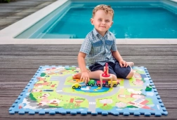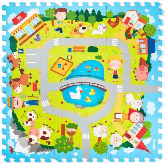 Skumgulvpuslespillet Landsby er et ideelt valg til børneværelser og legehjørner. Delene med farvet tryk skaber en legeflade, der er behagelig at røre ved, let at vedligeholde og samtidig beskytter børnene mod kulde fra gulvet. Den riflede overflade uden udtagelige brikker øger sikkerheden under leg.