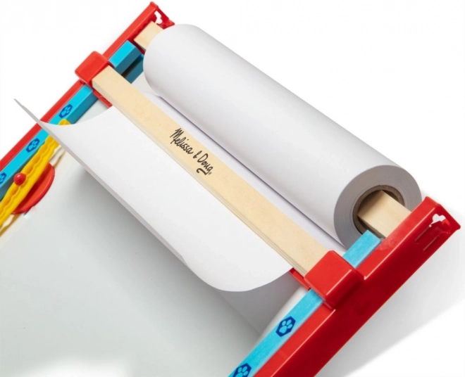 En integreret holder med papirrulle understøtter maling med pensler og tuscher. Riv blot et ark af og udstil de færdige billeder.