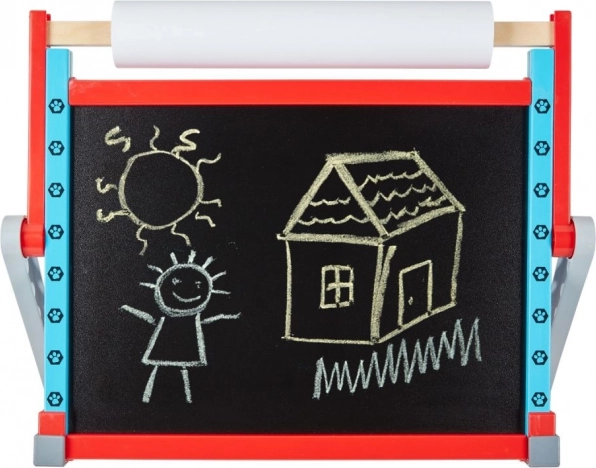 Den ene side fungerer som en klassisk kridttavle, den anden som en hvid magnetisk overflade til tuscher og magneter. Børn kan nemt skifte mellem teknikker og tegnestil.