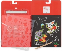 Spiralformet skrabeblok med PAW PATROL – Marshall kombinerer magien i afslørende billeder med praktiske skabeloner. Skrab let med træstylussen, og under det sorte lag dukker strålende farver og detaljerede illustrationer af de elskede helte op. Fantastisk til de første tegneforsøg, tålmodighed og koncentration.