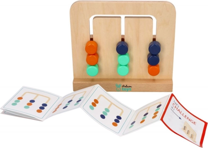 Sættet indeholder et træpuslespil med 9 blokke i 3 farver eller 3 mønstre på den anden side samt en tosidet brochure med kort. Sjoven består i at omarrangere blokkene, så de danner det mønster, du vælger.