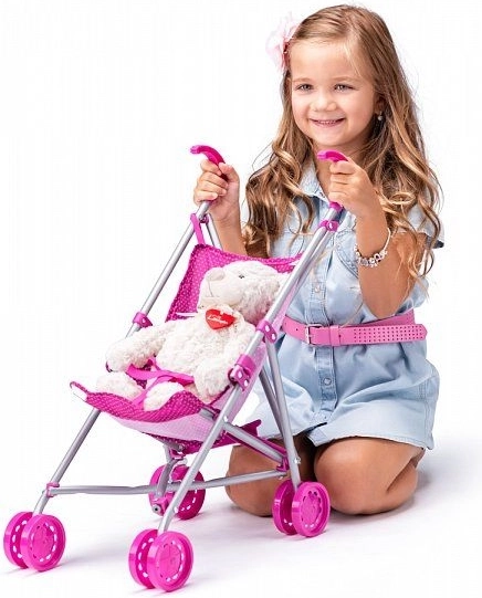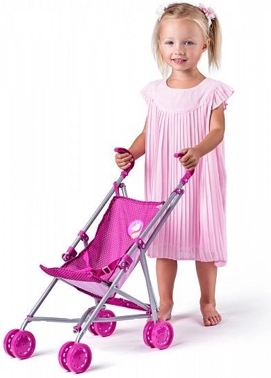 Vognen er udstyret med en robust metalramme og et behageligt stoftsæde. Små piger kan træne deres plejeevner, mens de har det sjovt. Klassisk stil gør, at den let kan bruges både indenfor og udenfor.