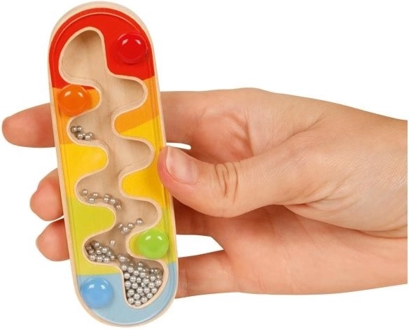 Denne farverige regnstav er designet til at fange børns interesse med sin enkelhed og effekt. Ved langsom drejning passerer kuglerne små forhindringer og lyder som regndråber. Legetøjet stimulerer både syns- og høresansen og er en glimrende introduktion til rytme og musik.
