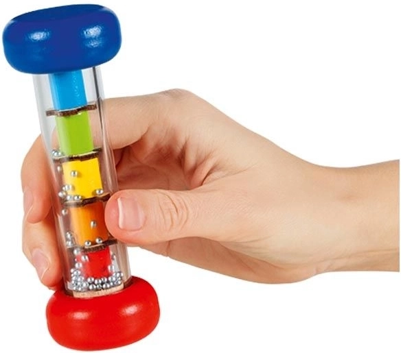 GOKI mini regnstav er ideel til børn fra 1 år. Det gennemsigtige plasttubus med farvede elementer og små sølvkugler skaber en fascinerende visuel og lydmæssig effekt. Børn træner motorik, hånd-øje-koordination og udforsker samtidig rytme og lyd.