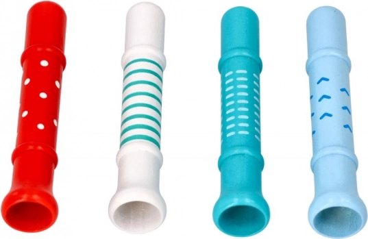 Sød træfløjte i pastelfarver fra Goki, der glæder børn med en lys, skarp fløjtetone. Understøtter udvikling af musikalsk sans og træner sanseindtryk. De kompakte mål på 12 cm i længden og en diameter op til 2 cm passer perfekt i en barnehånd. Leveres som mix af mønstre og farver afhængigt af lagerstatus.