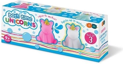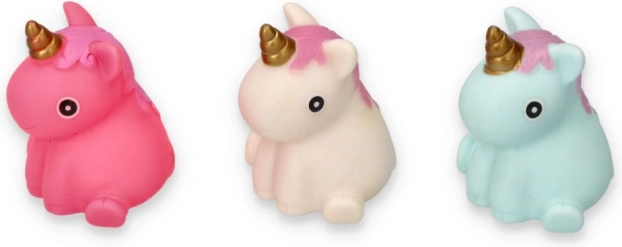Oplev en magisk badeverden med et sæt unicorns i blide farver. Hver unicorn har et gyldent horn og en glad manke, som stimulerer barnets fantasi. Takket være det behagelige, bløde materiale kan de nemt klemmes og er ideelle til små børnehænder.