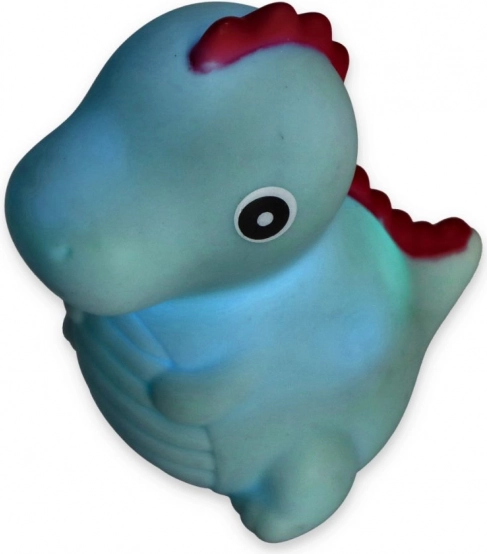 Farverigt sæt dinosaurbadlegetøj til børn fra 9 måneder. Blødt, let at gribe og sikkert. Sjov i badet og udvikling af finmotorik.