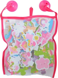 Farverige skumdele flyder på vandet og holder på badevæggene, når de bliver fugtige. Børn kan skabe deres eget enhjørningeunivers og lære former og farver.