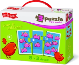Dine børn vil have det sjovt og lære med Far Far Land-puslespillet, der kombinerer sjov leg og uddannelsesmæssige elementer. Hvert billede i pakken har simple opgaver om addition og subtraktion, som hjælper med at udvikle deres matematiske færdigheder.