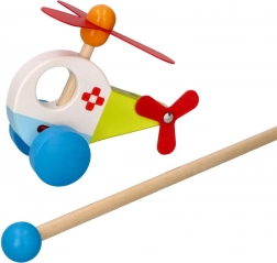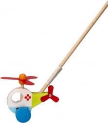 Træhelikopteren med stang fra Goki giver masser af sjov for børn, der netop lærer at gå. Den er lavet af massivt træ, hvilket garanterer lang levetid og sikker leg. Takket være det farverige design og de bevægelige dele, såsom propel og hjul, fanger den enhver lille opdagers opmærksomhed.