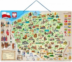 Dette stilfulde magnetiske Polen-kort 3 i 1 kombinerer leg og læring. Børn øver genkendelse af regioner og byer samt rumlig orientering ved hjælp af magnetiske brikker. Det store format 67 × 47 cm sikrer godt overblik og komfort ved leg både på bordet og på en magnettavle.