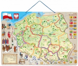 Kortet opfylder kravene til legetøjssikkerhed (CE). Takket være den høje kvalitet og det attraktive design er det en fremragende hjælp ved den første introduktion til Polens geografi.
