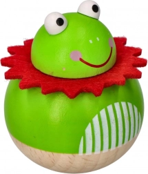 Den legende frø vælter aldrig – uanset om børnene vender den på hovedet, skubber til den eller snurrer den, vender den altid smilende tilbage til oprejst position. Denne enkle, men fængende mekanik understøtter øje–hånd-koordination, træner finmotorik og udvikler naturligt børns nysgerrighed.