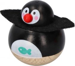 Den søde, uvæltelige frø fra Goki vil glæde enhver lille én. Takket være den afrundede bund rejser den sig altid op igen, og den kan også snurres som en snurretop. Kombinationen af kvalitetstræ og filt, sikre farver og kompakte mål gør den til en sjov legeting til udvikling af finmotorik og sansning.