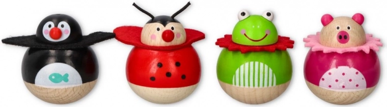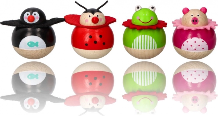 Den afrundede bund sikrer, at frøen af sig selv vender tilbage til lodret position efter hvert skub. Ideel til de første oplevelser med balance og årsag–virkning.
