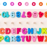 Opdag en verden af læring, hvor sjov møder nytte. Den træpædagogiske tavle giver børn mulighed for ikke kun at lære bogstaver og tal, men også at øve grundlæggende matematiske operationer. Tavlen er udstyret med udtagelige elementer med tal, matematiske symboler og hele alfabetet i livlige farver. Ti træpinde med farvede ringe muliggør visuel og taktil undervisning.