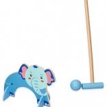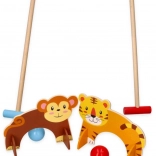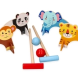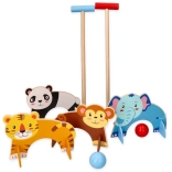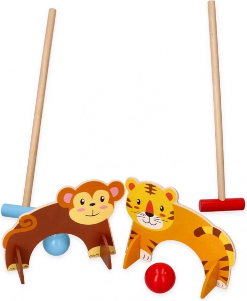 Dette træ-kroket sæt er ideelt til små børn, der ønsker at nyde udendørssjov. Spillet inkluderer farverige køller og bolde, hvor hver gate har sit eget dyremotiv, hvilket skaber en interaktiv og fantasifuld spilleoplevelse.