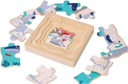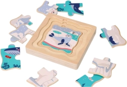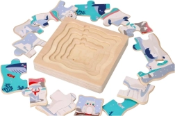 Dette lagdelte træpuslespil med et strejf af Arktis kommer med 15 farverige puslebrikker og en solid træbase. Det er designet til at styrke kognitiv udvikling og koordinationsfærdigheder hos børn.
