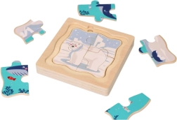 Oplev Arktis’ magi med vores træpuslespil, ideelt til børn fra 12 måneder. Puslespillet indeholder følgende egenskaber: