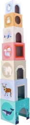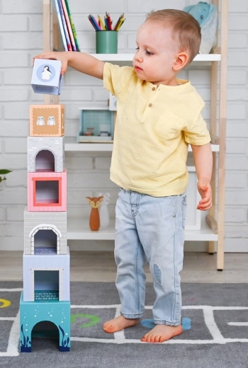 At bygge tårne af dele i forskellige størrelser er en tidløs leg, som både underholder og lærer børn. Denne pyramide kombinerer kraftig pap og træ, har glatte kanter og er fremstillet af nietoksiske, sikre materialer med CE-overensstemmelse – et ideelt valg til det første byggesæt.