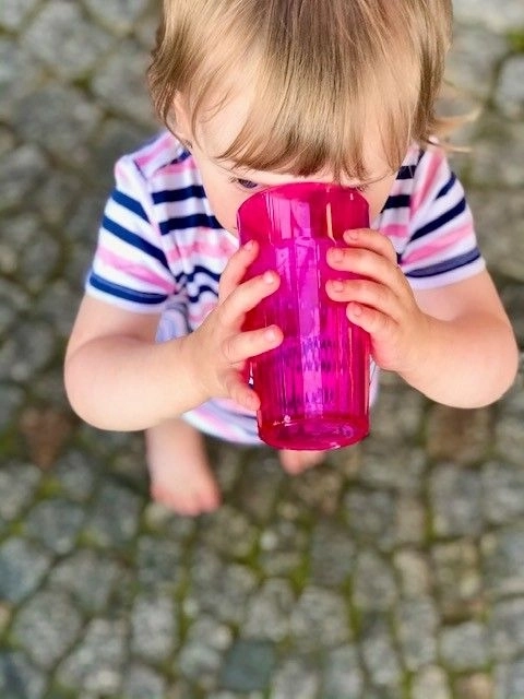 Reflo understøtter en naturlig drikkemåde fra en åben kant og hjælper børn med overgangen fra sutteflaske til almindelig kop.