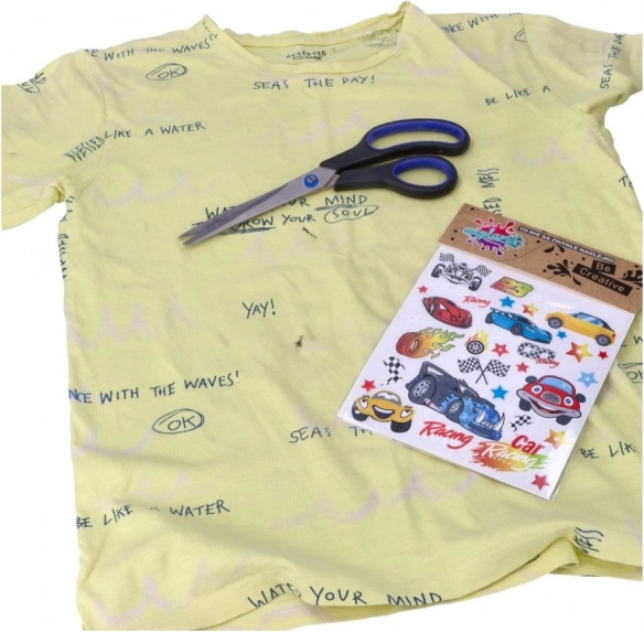 Klip motivet ud, placer det og stryg det forsigtigt på. En hurtig forandring af tøjets udseende uden syning.