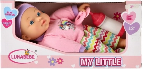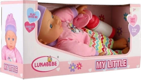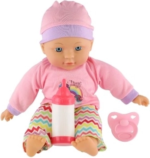 Dukken leveres med en flaske og en sut, hvilket giver børn en realistisk legeoplevelse. Takket være det bløde krop er den også velegnet til at kramme og giver en følelse af tryghed.